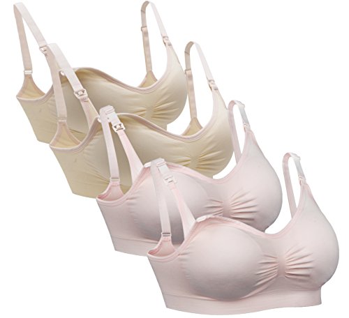 iLoveSIA (アイラブシア) マタニティ ブラジャー 2Wayオープン ノンワイヤー 4枚セット ピンク+ピンク+薄黄+薄黄 M