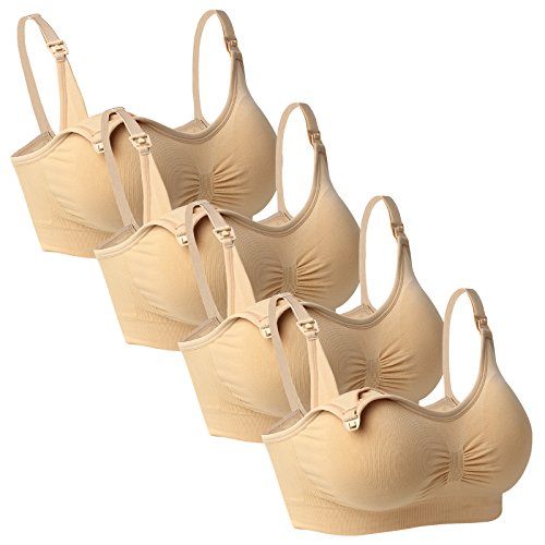 iLoveSIA (アイラブシア) マタニティ ブラジャー 2Wayオープン ノンワイヤー 4枚セット ベージュ LL