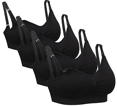 iLoveSIA (アイラブシア) マタニティ ブラジャー 2Wayオープン ノンワイヤー 4枚セット 黒 S