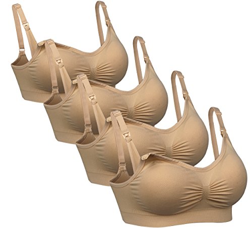 iLoveSIA (アイラブシア) マタニティ ブラジャー 2Wayオープン ノンワイヤー 4枚セット ベージュ M