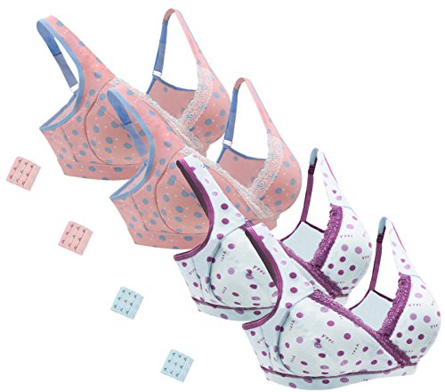 iLoveSIA (アイラブシア) マタニティ ブラジャー クロスオープン ノンワイヤー ブラカップ付 4枚組み ピンクブルー+ピンクブルー+ブルー+ブルー LL(2XL実物サイズタグ)
