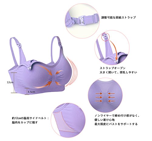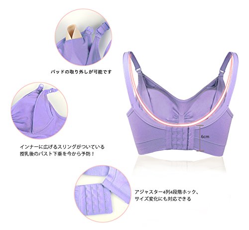 iLoveSIA (アイラブシア) マタニティ ブラジャー 2Wayオープン ノンワイヤー 3枚セット 紫+ピンク+ベージュ M