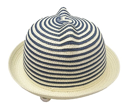 赤ちゃん の お出かけ用 麦わら 帽子 キャップ 男の子 女の子 (ブルー, 46cm-50cm(6ヶ月〜3歳目安))
