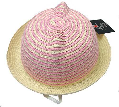 赤ちゃん の お出かけ用 麦わら 帽子 キャップ 男の子 女の子 (桜色, 46cm-50cm(6ヶ月〜3歳目安))