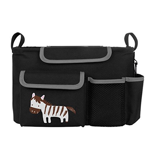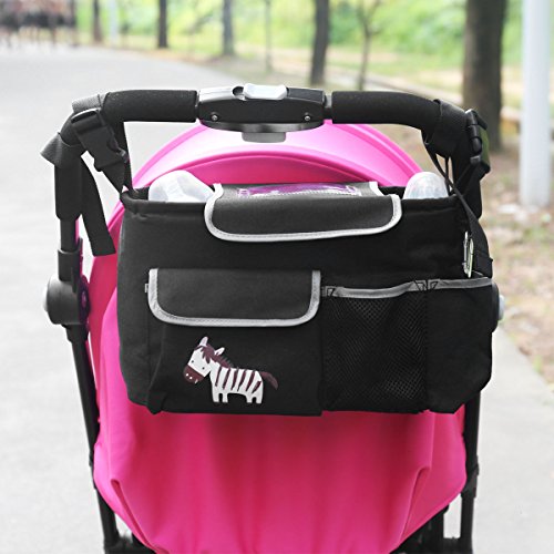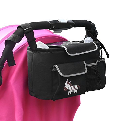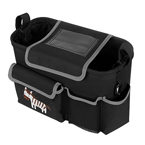 iRegro 収納バッグ ベビーカー用 【多機能 大容量 超便利】軽量 緩衝材付き 丈夫なオックスフォード製 20KGの小物を収納 ドリンクホルダー 収納ポケット(ブラック)