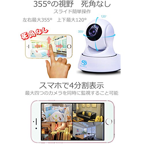 - 無料アプリの「CAM360」をダウンロードしてスマホやタブレットからカメラをコントロール可能! カメラの向きを上下左右に自由に動かせますので、お部屋のすみずみまで見渡せます。