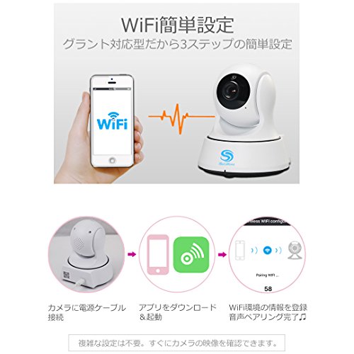 - 本製品は、電源とWiFi環境があれば簡単に設置ができるクラウド対応のネットワークカメラです。 3ステップの簡単接続なので、ネットワーク機器の知識や複雑な設定は不要。音声ガイダンスに従ってカンタンWiFi設定して、最新のP2Pクラウド技術で瞬間接続できます。