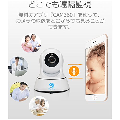 iSecuHome 200万画素 1080P ベビーモニター 防犯カメラ ネットワークカメラ ポケットwifi対応 瞬間接続 スマホ/PC 留守 介護 ペット 遠隔監視 赤外線LED 双方向通話 音声 カード録画 暗視 監視カメラ 「IPC-4008」 (1080P)