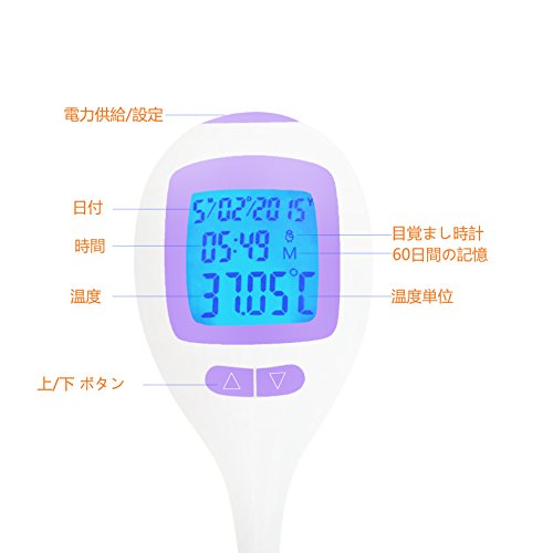 婦人体温計、女性基礎体温計 (口中用) 、排卵周期を測定、60日間の記憶、±0.05°C高精度、利用可能な日付、時間、目覚まし時計