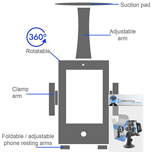 iTALKonline Samsung Galaxy Note 7R / Note7R {色}多方向ダッシュボード/ウインドスクリーン、ケースコンパチブル(既存のケースの有無にかかわらず使用!)車載用サクションマウントクリップ