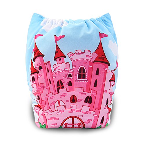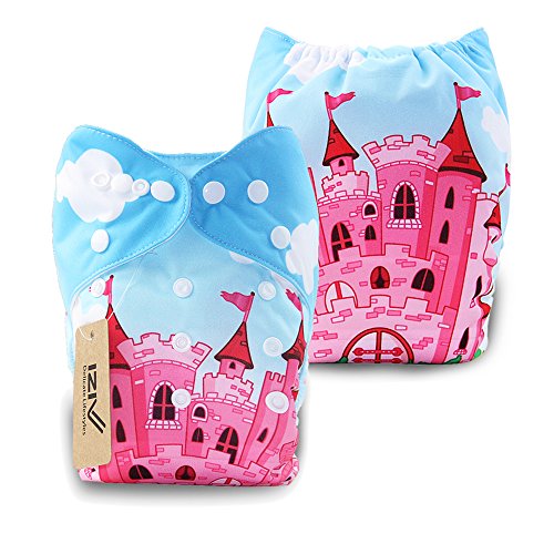 iZiv新生児1厚いおむつ付きオーガニック幼児防水/調整/再利用可能/洗えるポケット布おむつのフィット赤ちゃん0.5-3歳(ピンクの城)