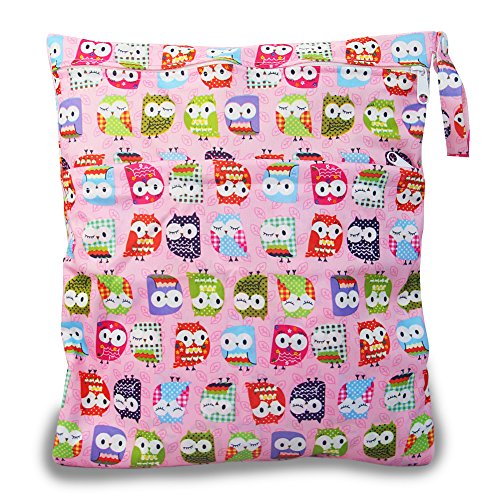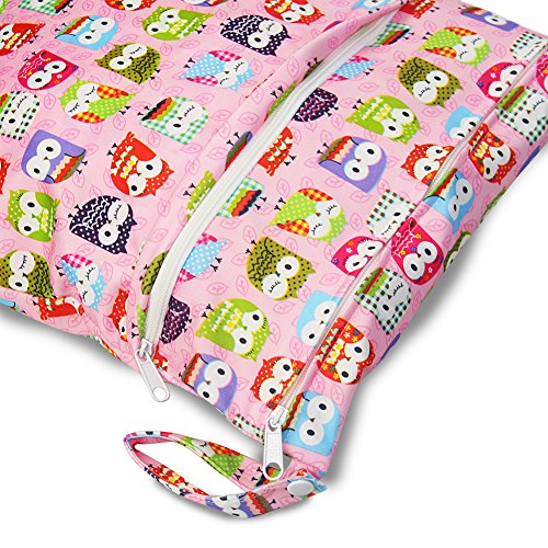 iZivベビー防水再利用可能 ウェットとドライ おむつバッグポーチダブルジッパー印刷おむつ袋(ふくろう)