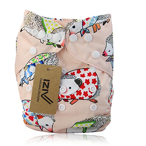 iZiv新生児1厚いおむつ付きオーガニック幼児防水/調整/再利用可能/洗えるポケット布おむつのフィット赤ちゃん0.5-3歳(ハリネズミ)