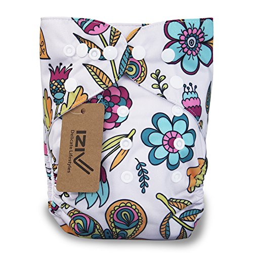 iZiv新生児1厚いおむつ付きオーガニック幼児防水/調整/再利用可能/洗えるポケット布おむつのフィット赤ちゃん0.5-3歳(花)
