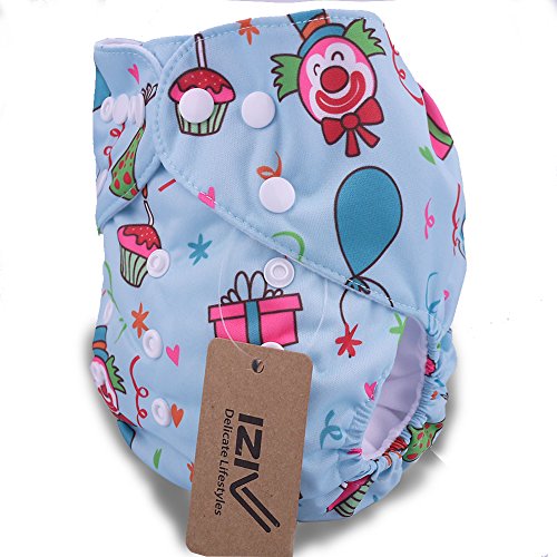 iZiv新生児1厚いおむつ付きオーガニック幼児防水/調整/再利用可能/洗えるポケット布おむつのフィット赤ちゃん0.5-3歳(ブルー)