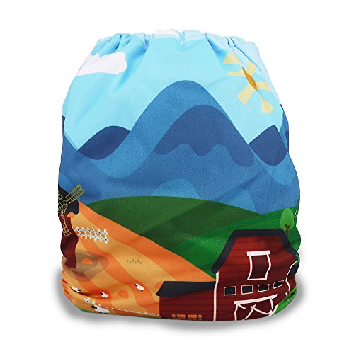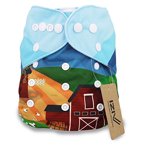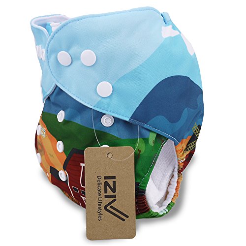 iZiv新生児1厚いおむつ付きオーガニック幼児防水/調整/再利用可能/洗えるポケット布おむつのフィット赤ちゃん0.5-3歳(スカイ)