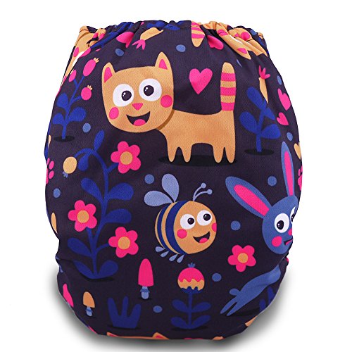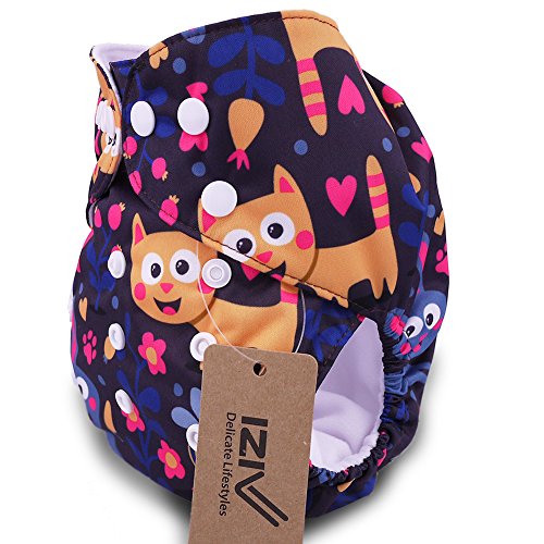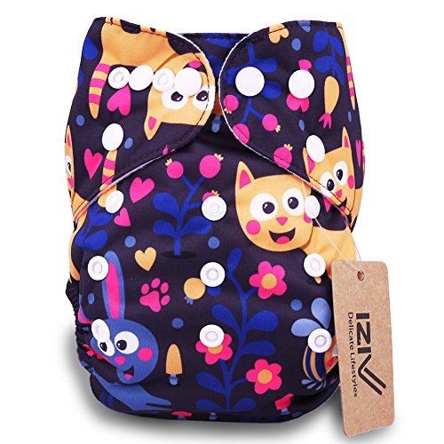 iZiv新生児1厚いおむつ付きオーガニック幼児防水/調整/再利用可能/洗えるポケット布おむつのフィット赤ちゃん0.5-3歳(動物)