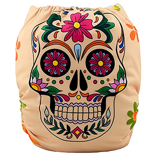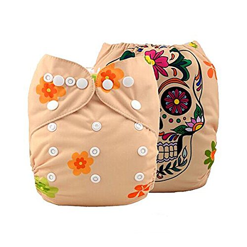 iZiv新生児1厚いおむつ付きオーガニック幼児防水/調整/再利用可能/洗えるポケット布おむつのフィット赤ちゃん0.5-3歳(カラフルなスカル)
