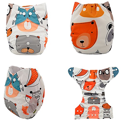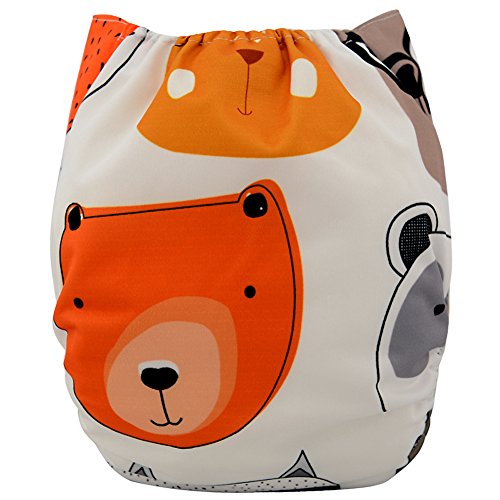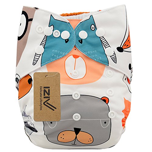 iZiv新生児1厚いおむつ付きオーガニック幼児防水/調整/再利用可能/洗えるポケット布おむつのフィット赤ちゃん0.5-3歳(動物)