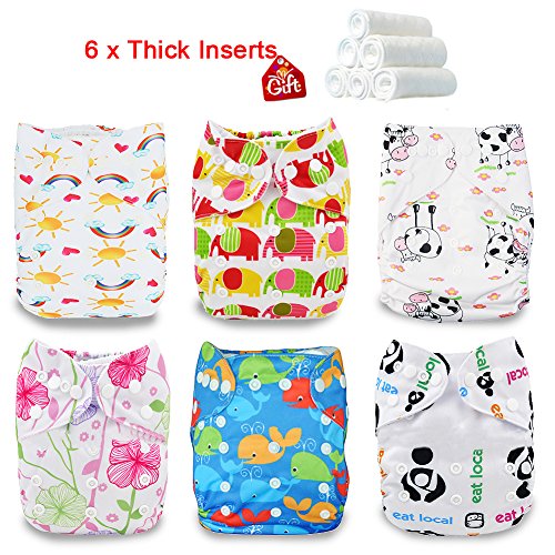 iZiv新生児6厚いおむつ付きオーガニック幼児防水/調整/再利用可能/洗えるポケット布おむつのフィット赤ちゃん0.5-3歳(カラー 15)