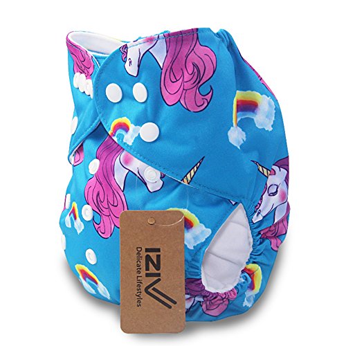iZiv新生児1厚いおむつ付きオーガニック幼児防水/調整/再利用可能/洗えるポケット布おむつのフィット赤ちゃん0.5-3歳(ユニコーン)