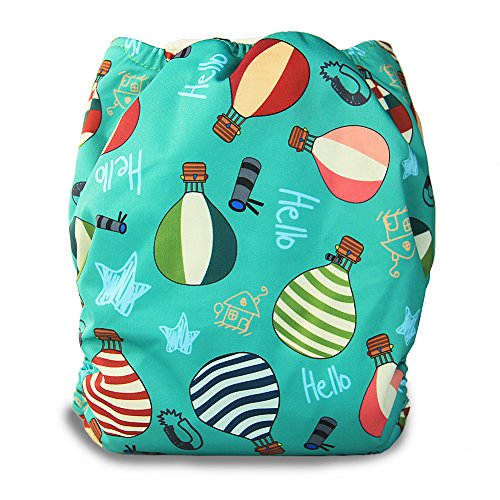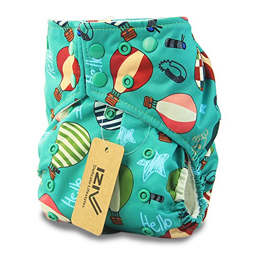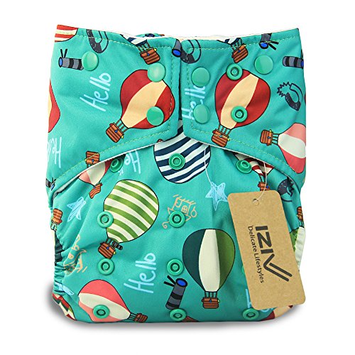 iZiv新生児1厚いおむつ付きオーガニック幼児防水/調整/再利用可能/洗えるポケット布おむつのフィット赤ちゃん0.5-3歳(熱気球)