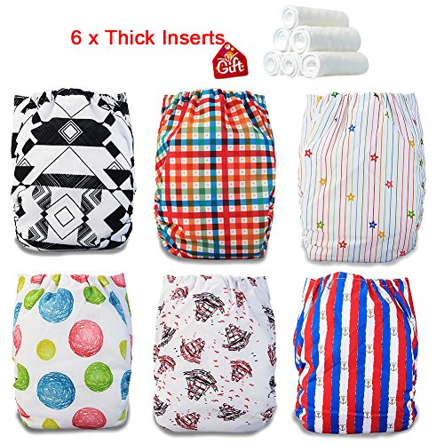 iZiv新生児6厚いおむつ付きオーガニック幼児防水/調整/再利用可能/洗えるポケット布おむつのフィット赤ちゃん0.5-3歳(カラー 9)