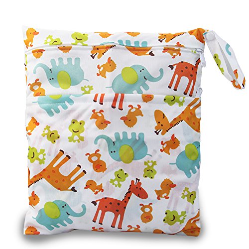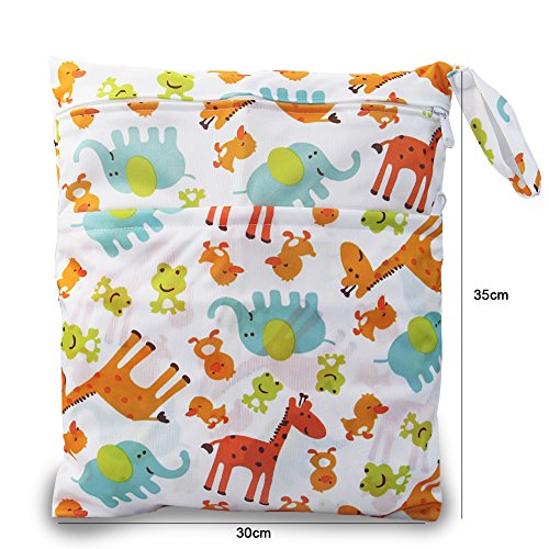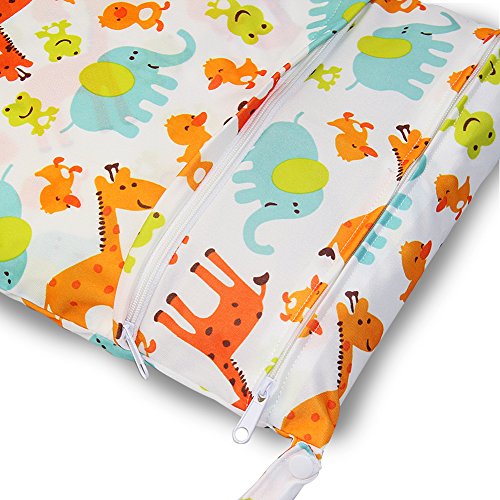iZivベビー防水再利用可能 ウェットとドライ おむつバッグポーチダブルジッパー印刷おむつ袋(キリン)