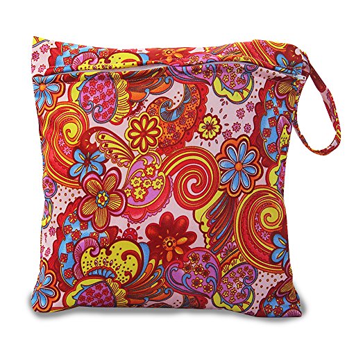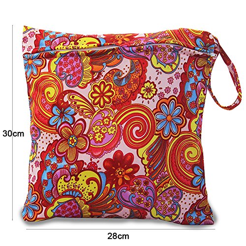 iZivベビー防水再利用可能 ウェットとドライ おむつバッグポーチ1ジッパー印刷おむつ袋(花)