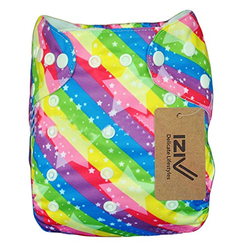 iZiv新生児1厚いおむつ付きオーガニック幼児防水/調整/再利用可能/洗えるポケット布おむつのフィット赤ちゃん0.5-3歳(カラフルなストライプ)