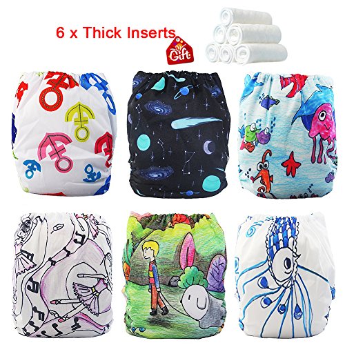 iZiv新生児6厚いおむつ付きオーガニック幼児防水/調整/再利用可能/洗えるポケット布おむつのフィット赤ちゃん0.5-3歳(カラー 1)