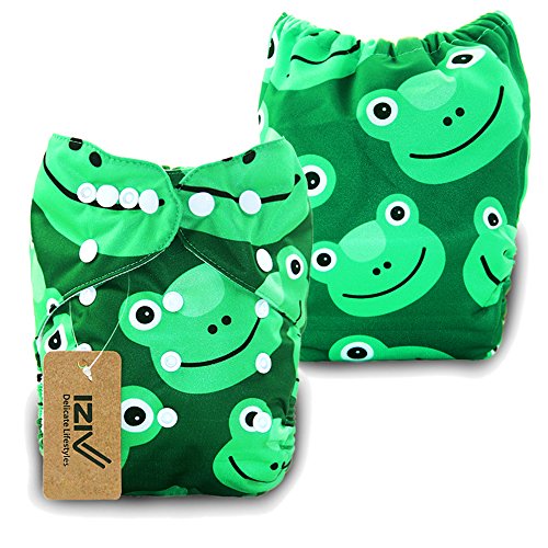 iZiv新生児1厚いおむつ付きオーガニック幼児防水/調整/再利用可能/洗えるポケット布おむつのフィット赤ちゃん0.5-3歳(カエル)