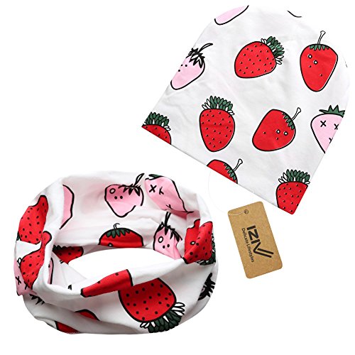 iZivかわいい赤ちゃん帽子スカーフ幼児ソフトコットン帽子とスカーフセット、0-2歳のファッションスタイル春秋(イチゴ)