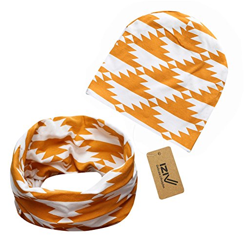 iZivかわいい赤ちゃん帽子スカーフ幼児ソフトコットン帽子とスカーフセット、0-2歳のファッションスタイル春秋(ホワイトイエロー)