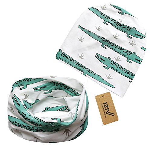iZivかわいい赤ちゃん帽子スカーフ幼児ソフトコットン帽子とスカーフセット、0-2歳のファッションスタイル春秋(クロコダイル)