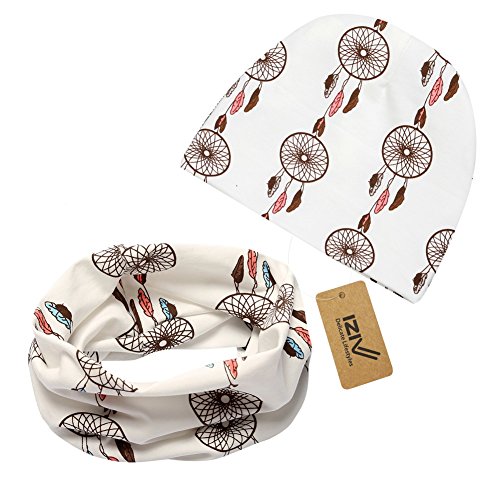 iZivかわいい赤ちゃん帽子スカーフ幼児ソフトコットン帽子とスカーフセット、0-2歳のファッションスタイル春秋(ホワイトブラウン)