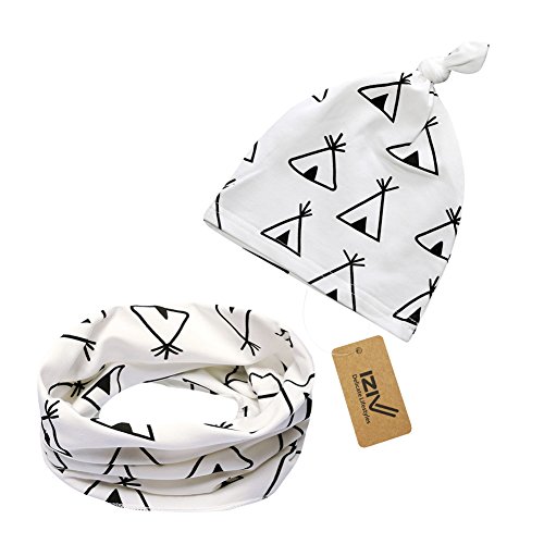 iZivかわいい赤ちゃん帽子スカーフ幼児ソフトコットン帽子とスカーフセット、0-2歳のファッションスタイル春秋(ホワイト)