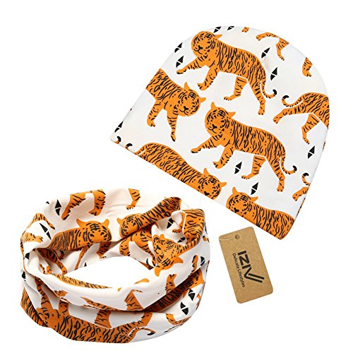 iZivかわいい赤ちゃん帽子スカーフ幼児ソフトコットン帽子とスカーフセット、0-2歳のファッションスタイル春秋(虎)