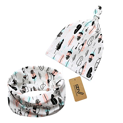iZivかわいい赤ちゃん帽子スカーフ幼児ソフトコットン帽子とスカーフセット、0-2歳のファッションスタイル春秋(フェザー)