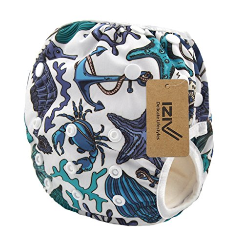 iZiv新生児オーガニック幼児防水/調整/再利用可能/洗える水泳のおむつのフィット赤ちゃん0.5-3歳(マリーン生物)
