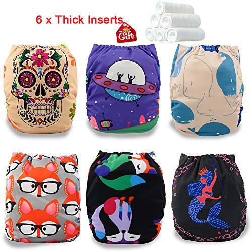 iZiv新生児6厚いおむつ付きオーガニック幼児防水/調整/再利用可能/洗えるポケット布おむつのフィット赤ちゃん0.5-3歳(カラー 5)