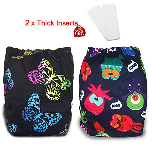 iZiv新生児2厚いおむつ付きオーガニック幼児防水/調整/再利用可能/洗えるポケット布おむつのフィット赤ちゃん0.5-3歳(カラー4)