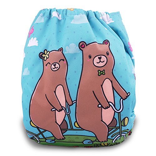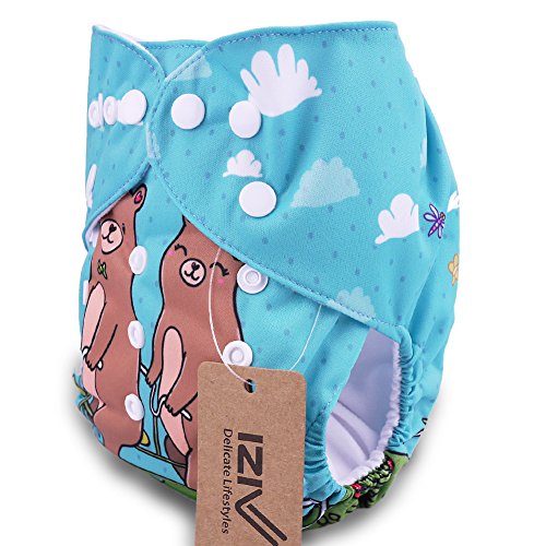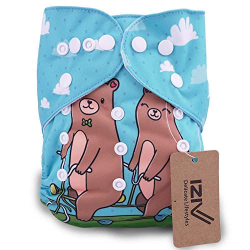 iZiv新生児1厚いおむつ付きオーガニック幼児防水/調整/再利用可能/洗えるポケット布おむつのフィット赤ちゃん0.5-3歳(ベア)