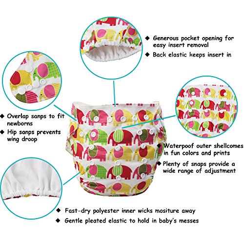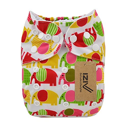 iZiv新生児1厚いおむつ付きオーガニック幼児防水/調整/再利用可能/洗えるポケット布おむつのフィット赤ちゃん0.5-3歳(のゾウ)
