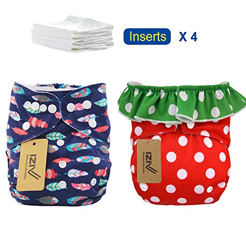 iZiv新生児2厚いおむつ付きオーガニック幼児防水/調整/再利用可能/洗えるポケット布おむつのフィット赤ちゃん0.5-3歳(カラー 1)