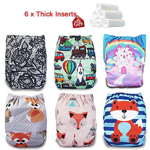 iZiv新生児6厚いおむつ付きオーガニック幼児防水/調整/再利用可能/洗えるポケット布おむつのフィット赤ちゃん0.5-3歳(カラー8)