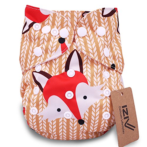 iZiv新生児1厚いおむつ付きオーガニック幼児防水/調整/再利用可能/洗えるポケット布おむつのフィット赤ちゃん0.5-3歳(フォックス)