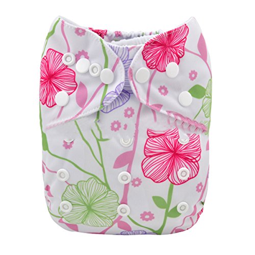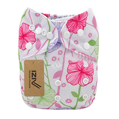 iZiv新生児1厚いおむつ付きオーガニック幼児防水/調整/再利用可能/洗えるポケット布おむつのフィット赤ちゃん0.5-3歳(の花の)