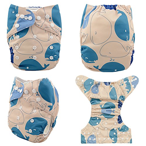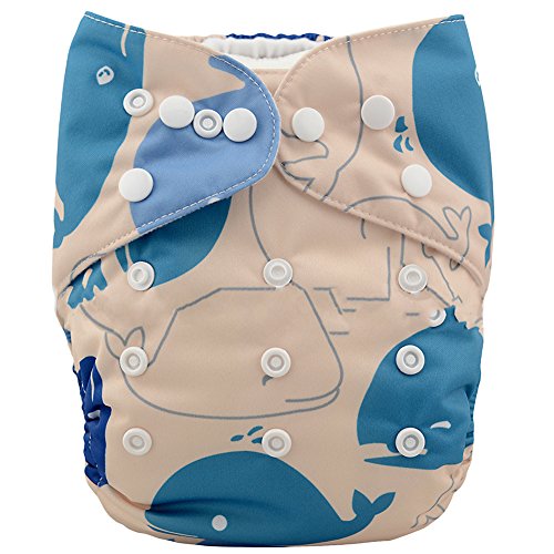 iZiv新生児1厚いおむつ付きオーガニック幼児防水/調整/再利用可能/洗えるポケット布おむつのフィット赤ちゃん0.5-3歳(鯨)