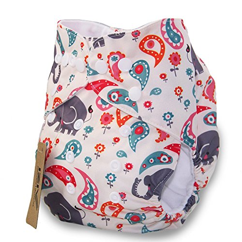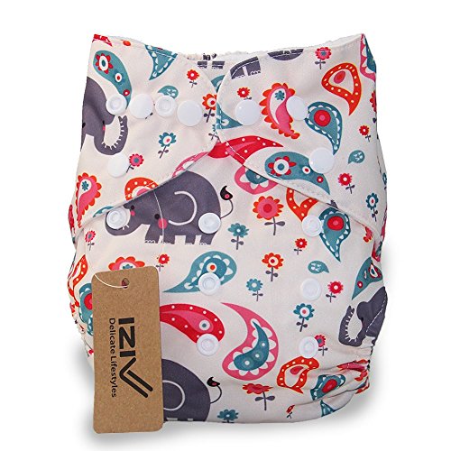 iZiv新生児1厚いおむつ付きオーガニック幼児防水/調整/再利用可能/洗えるポケット布おむつのフィット赤ちゃん0.5-3歳(ぞう)